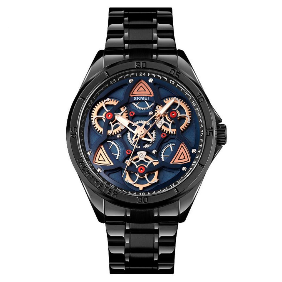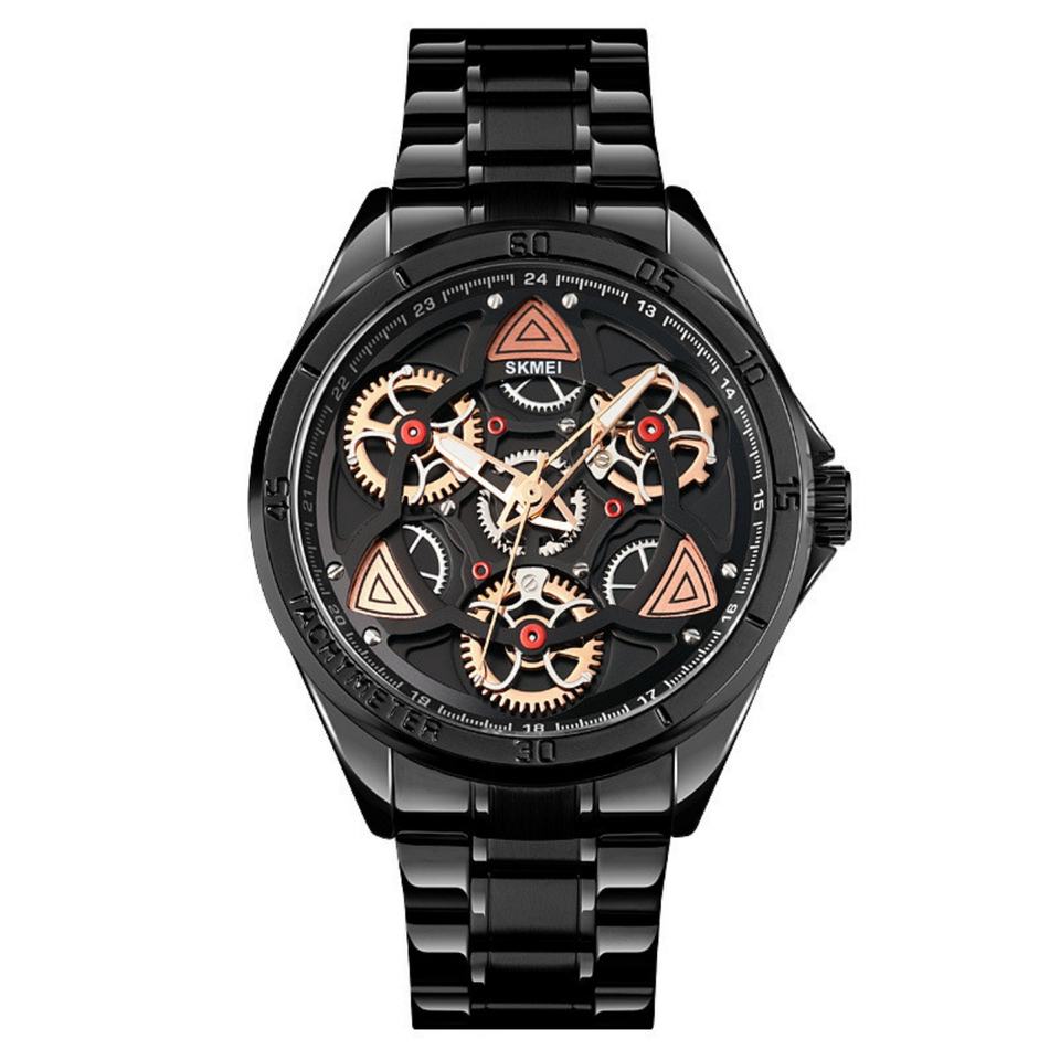 Skmei 1678 Men's 47mm Alloy Case Mechanical Quartz Watch Hollow Gear Glass Dial Personalized Business Fashion Gift Pointer