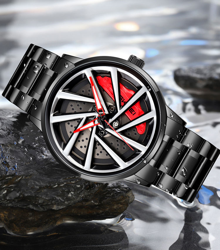 Hot selling Skmei 1990 Luxury Quartz Men's Wrist Watch Waterproof Car Wheel Design Glass Dial Window Customize Wholesale Watch