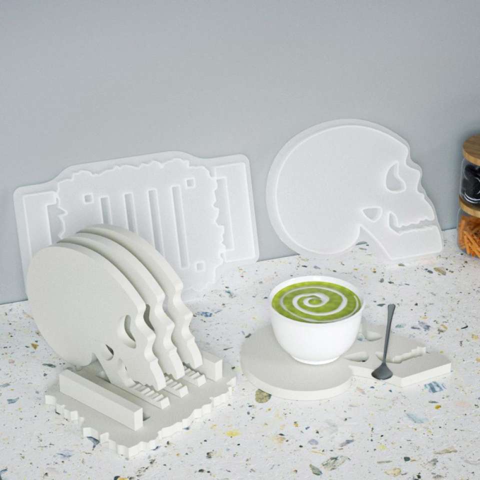 Skull Coaster Storage Rack Halloween Gypsum Epoxy Resin Silicone Mold