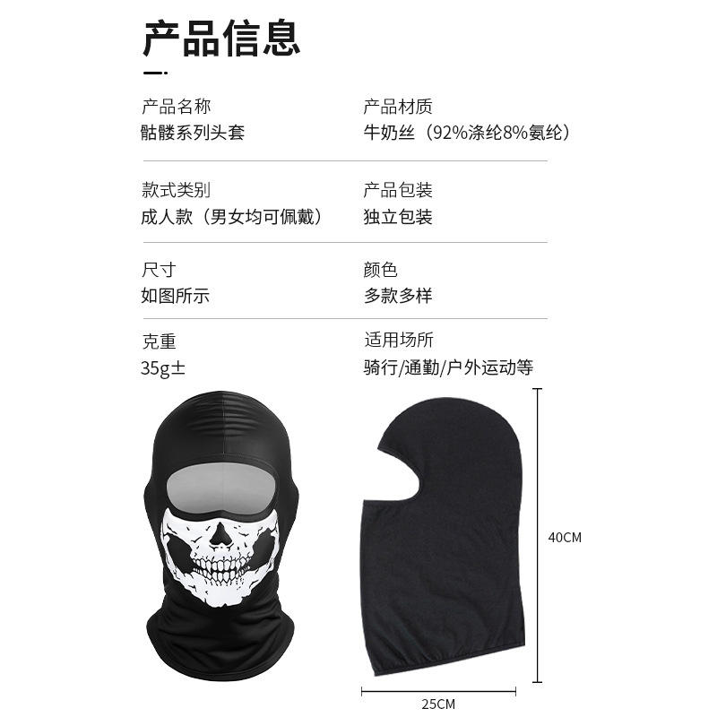 Skull Digital Print Riding Hood Milk Silk Face Mask 40cm Cycling Outdoor Protection