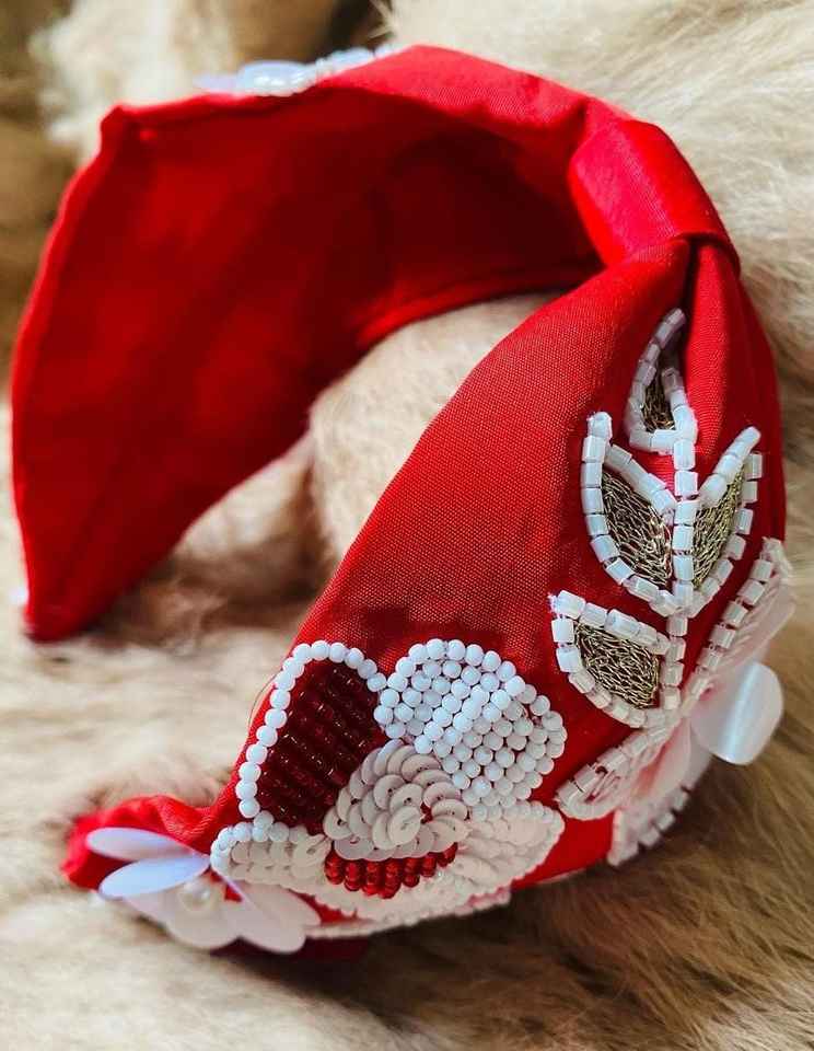 Sky Blue All-Hand Beaded Hairbands Trendy Fabric Headbands with Easy-to-Wear Soft Cushioned Fit Hand Embroidered Accessory