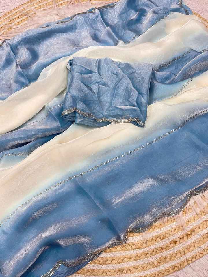Sky Blue Color Satin Fabric Beautiful Zarkhan Work Sari Latest Exclusive Ethnic Bridal Wedding Wear Stunning Bollywood Trendy