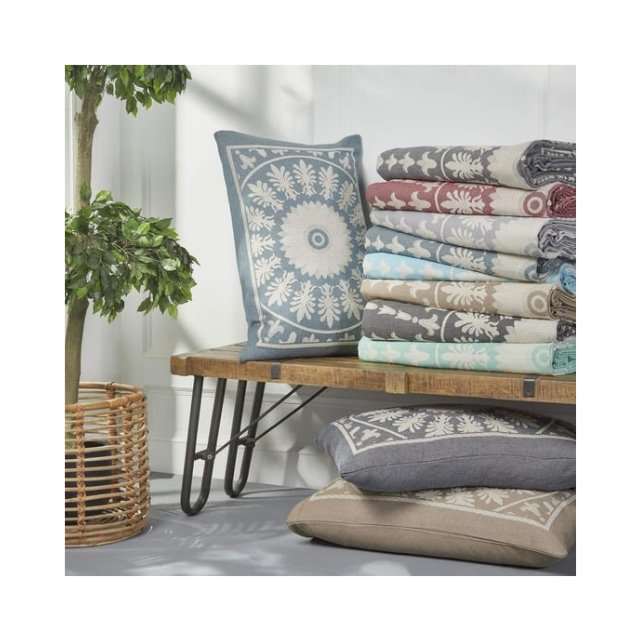 Sky Blue Colour Festive 400TC Quilted Patchwork Pattern GOTS Organic Cotton Heavyweight Bedspread For Indian Festival Decor