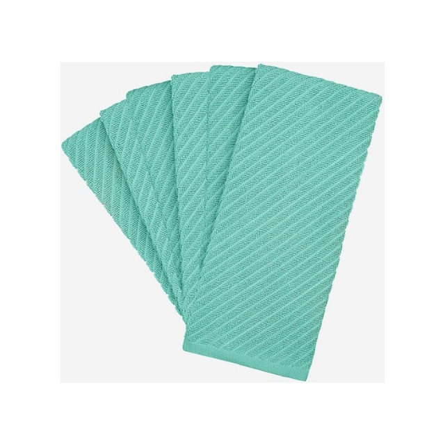 Sky Blue Cross Stripes Frost GOLF Style Ring Spun Cotton GOTS Certified Quick Dry Anti Pilling Embroidered Kitchen Towels