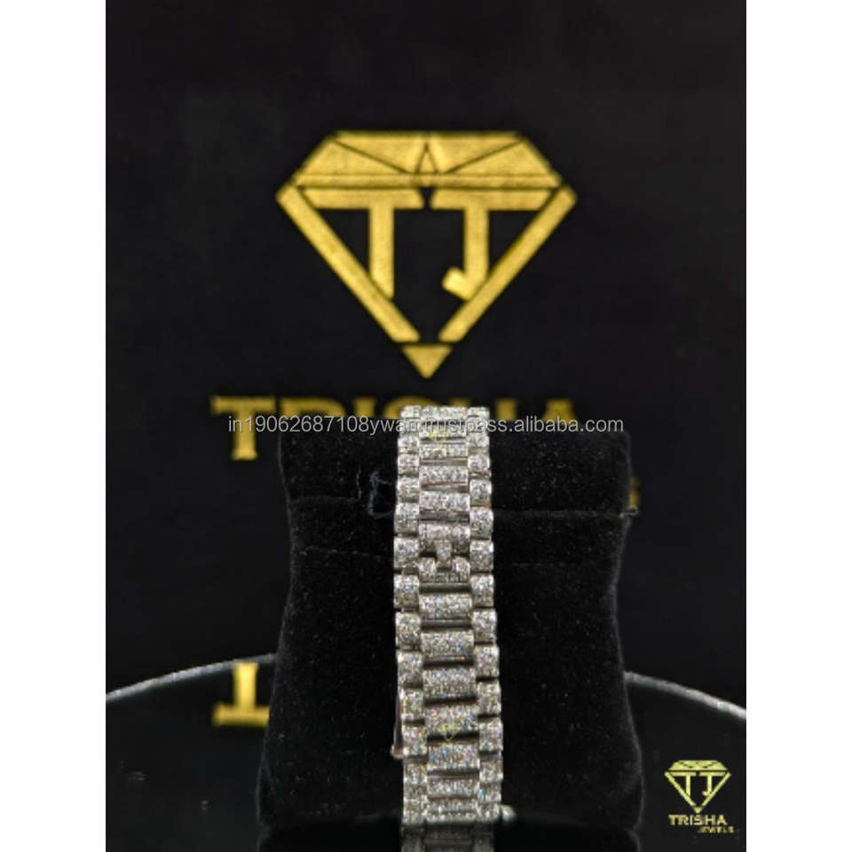 Sky Blue Dial Iced Out Silver Men Watch with VVS Moissanite Diamond Setting High End Luxury Wristwatch By Trisha Jewels