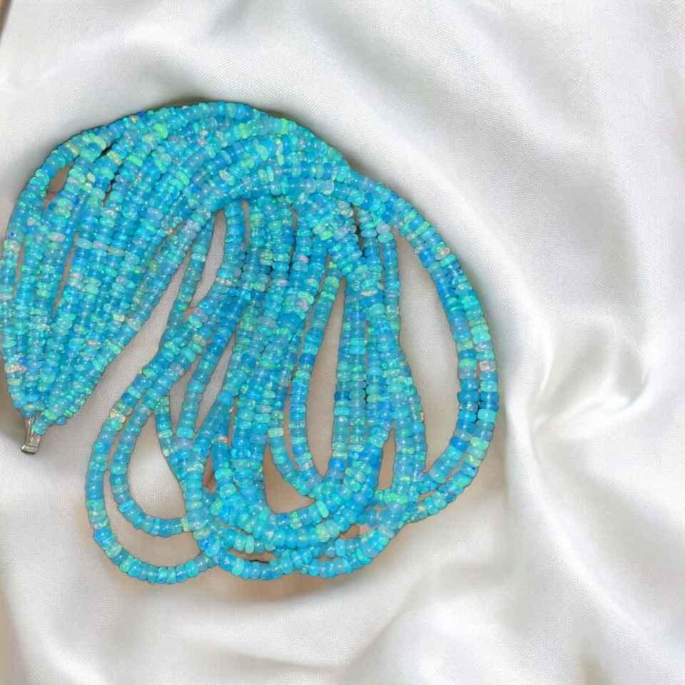 Sky Blue Ethiopian Opal Smooth Rondelle Beads 3-5mm Natural Gemstone Strand for Jewelry Making Necklace Bracelet Wholesale