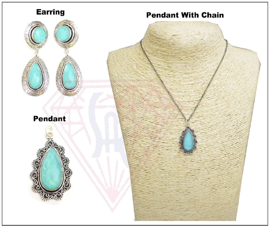 Product Name:Sky Blue Stylish Necklace Set With Chain And Stud Earrings