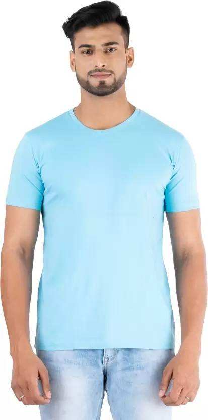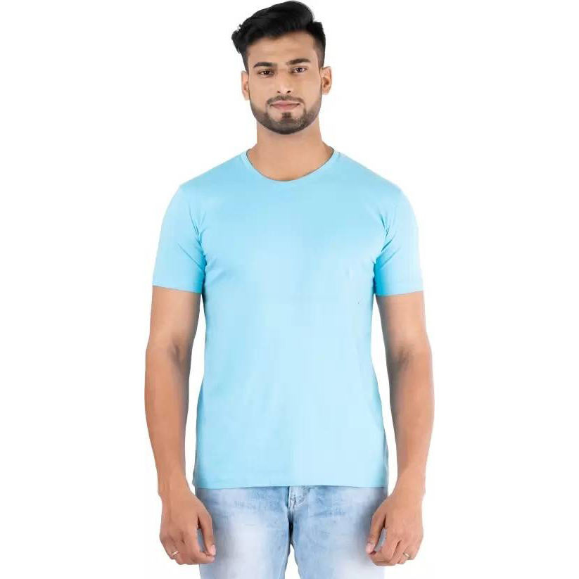 Sky Blue Good Quality Solid Regular Fit Round-neck T-shirt Custom Design Good Quality Causal Wears Men T-Shirts