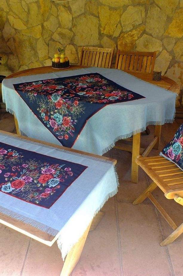 Sky Blue Handmade Tablecloth Set with Tablecloth Cushion Cover Runner 150x150 tablecloth 50x150 runner 50x50 2 cushion cases