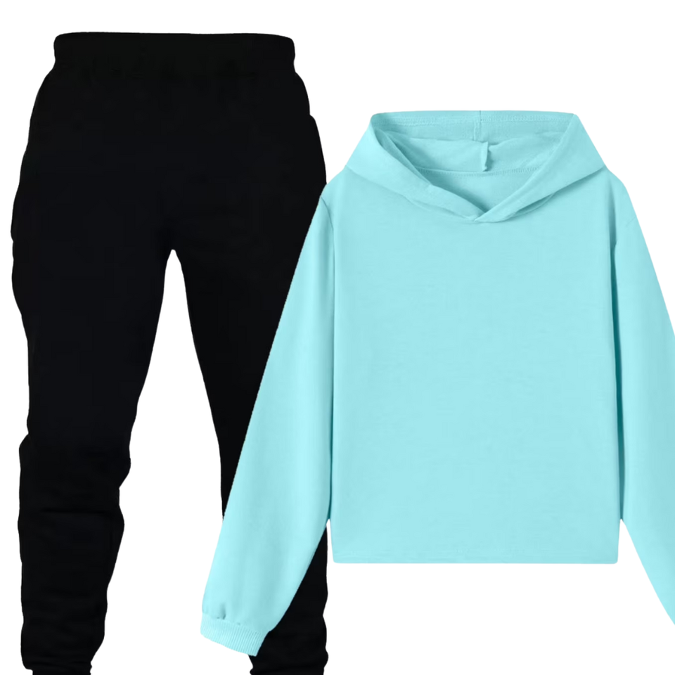 Sky Blue Hoodie With Black Jogger Tracksuit Women Casual Two Piece Outfit Trendy Street Wear Comfortable Winter Clothing OEM