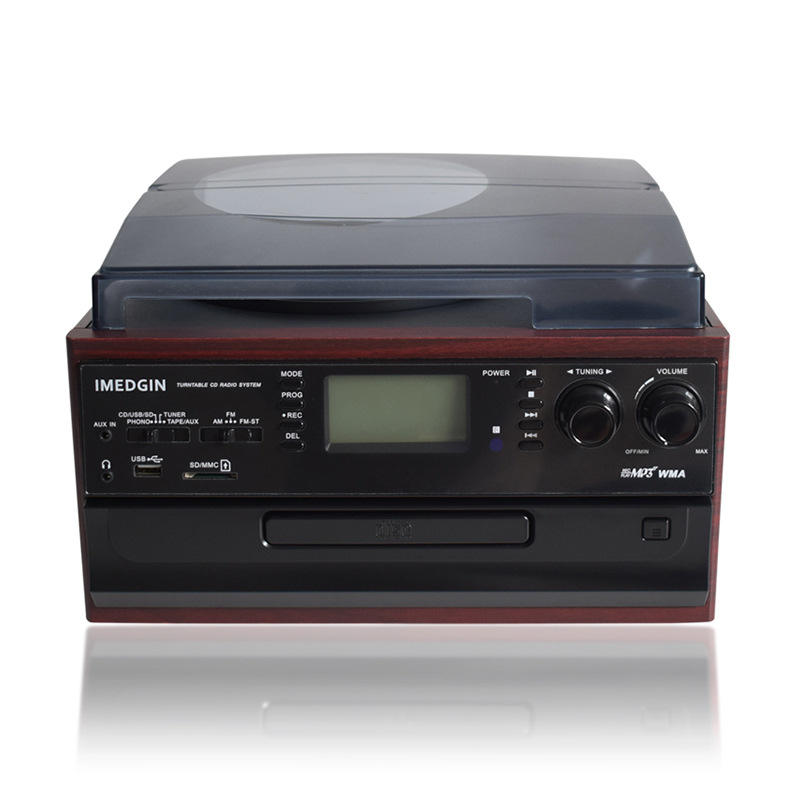 Skywin Retro Audio Record Player USB Extension Floor-standing Speakers with CD and FM Radio Three Speed Turntable for Home Use