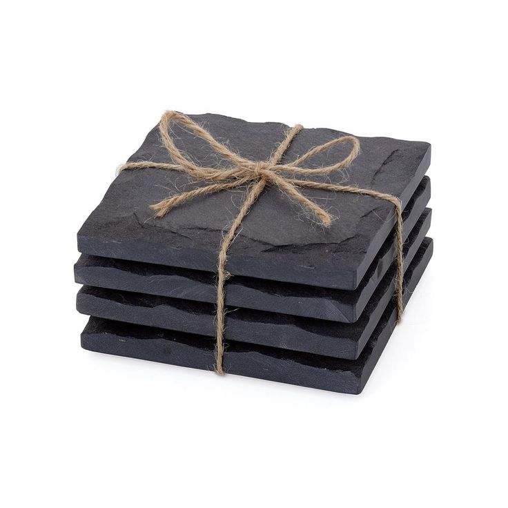 Slate Stone Coasters Round Black Natural Edge Stone Drink Coaster 4Pcs Pad Serving Plate for Bar and Home Top Decorative Coaster