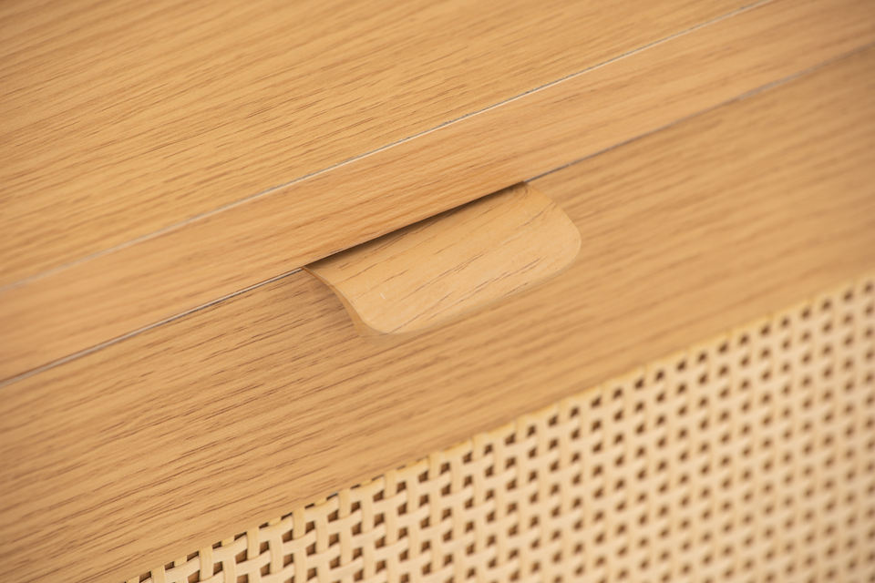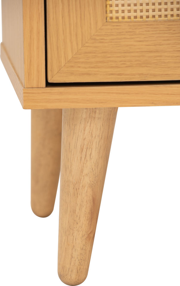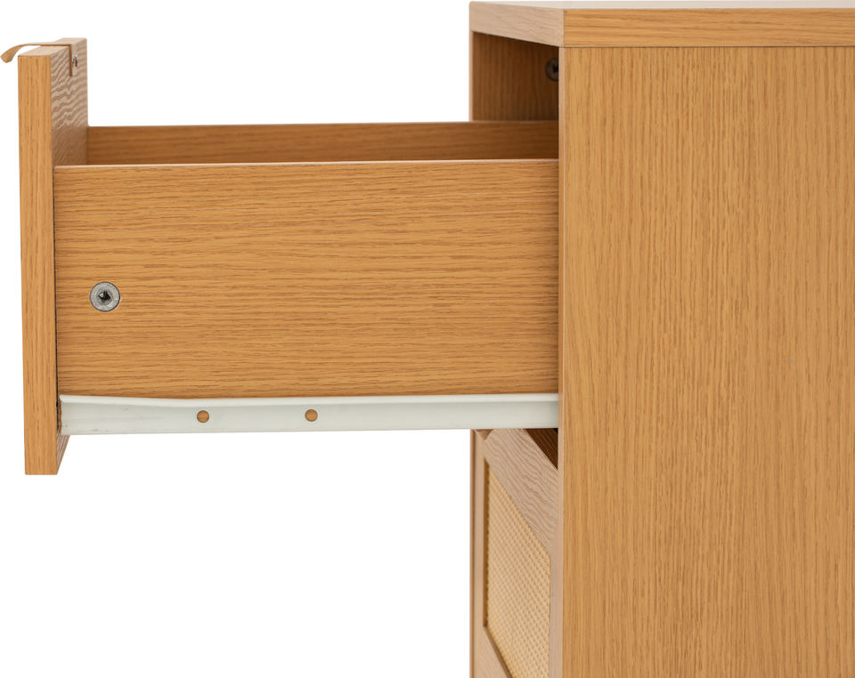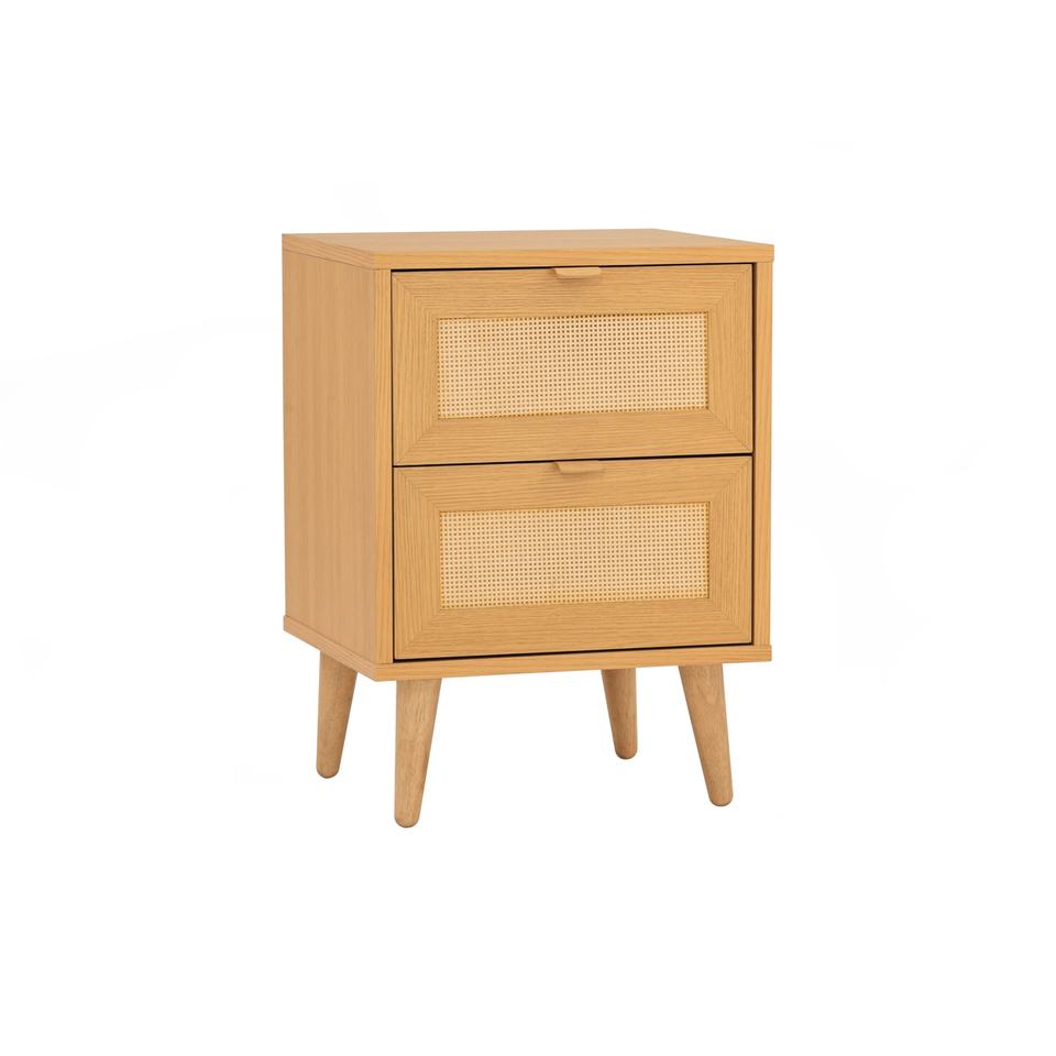 Sleek 2-Drawer Bedside Table Rattan Wooden Nightstand for Small Space Apartment and Living Room