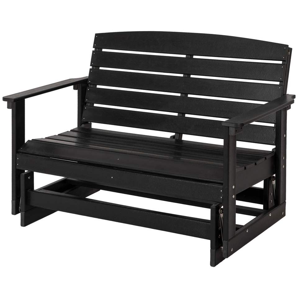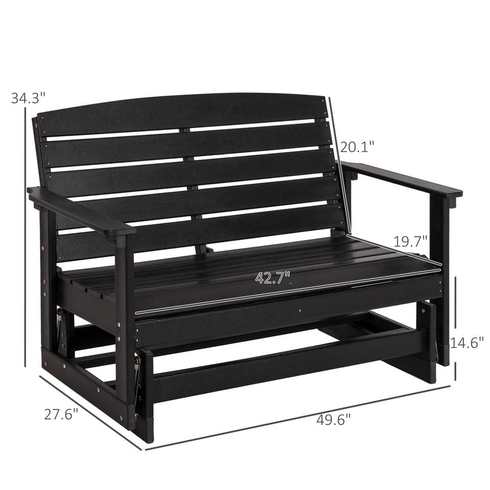 Sleek Black HDPE Slatted Double Rocking Chair Outdoor Patio Glider Bench in Stylish Design