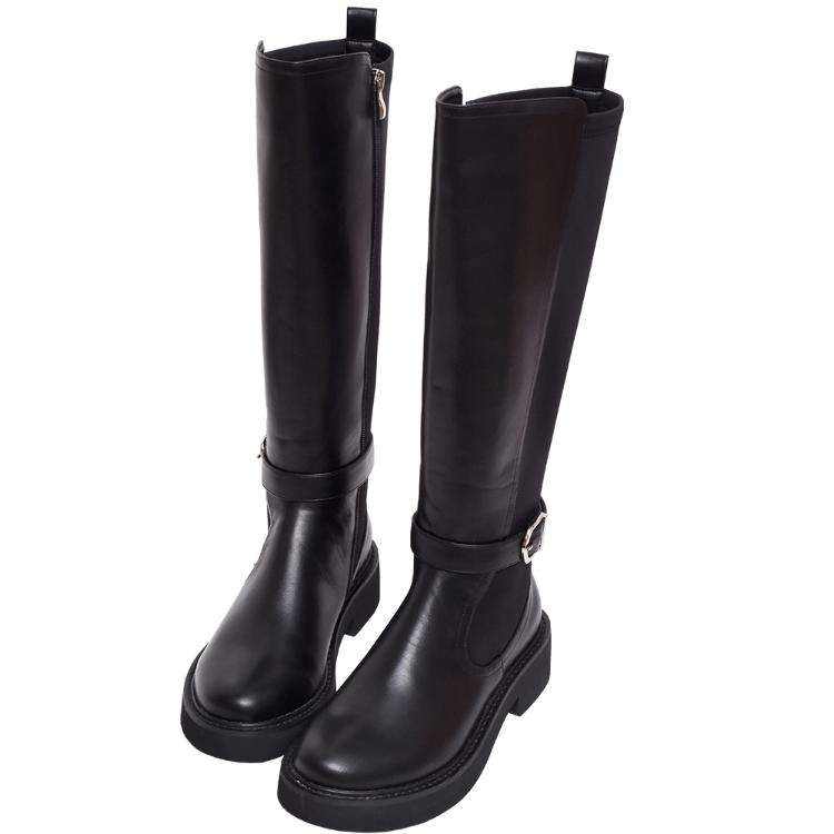 Sleek Knee-High Platform Boots Black PU Upper Genuine Leather Midsole Anti-Friction Heel Cushion Side Zipper Closure-Winter