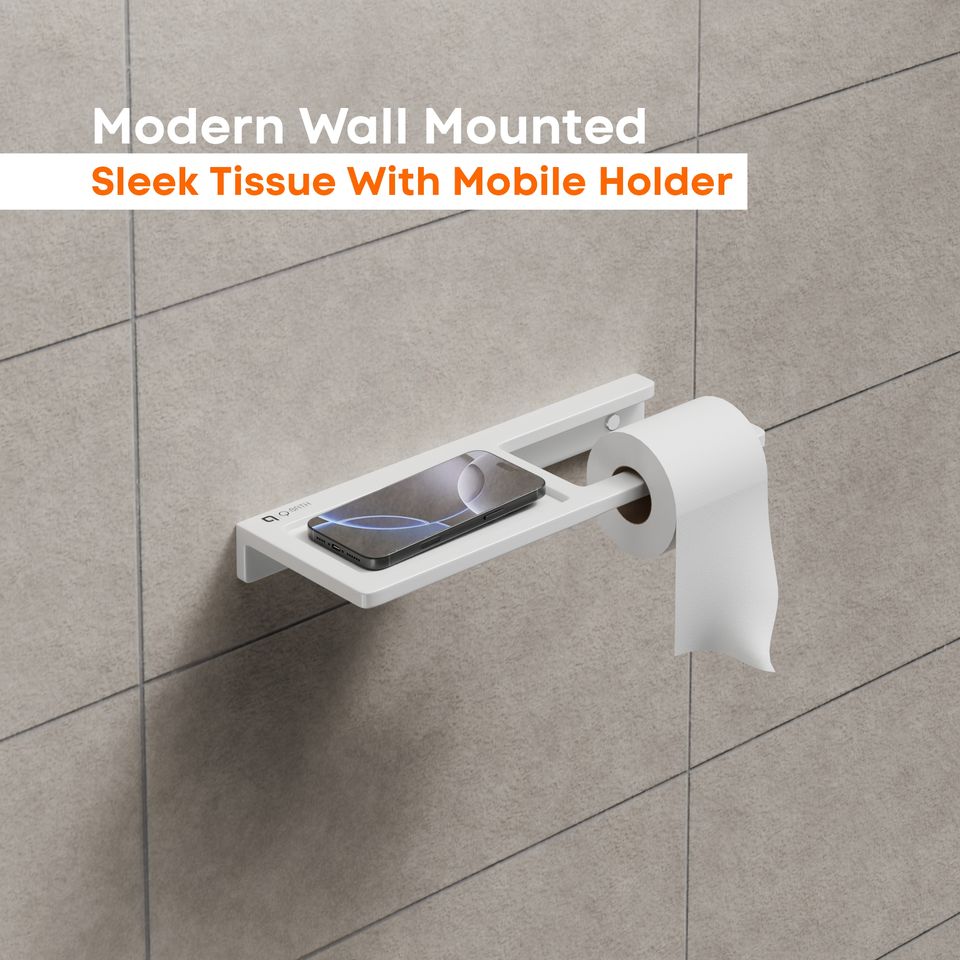 Sleek Tissue Holder Wall Mounted Metal Rack With Mobile Phone Shelf Heavy Duty Bathroom Storage Hardware Double Function Silver