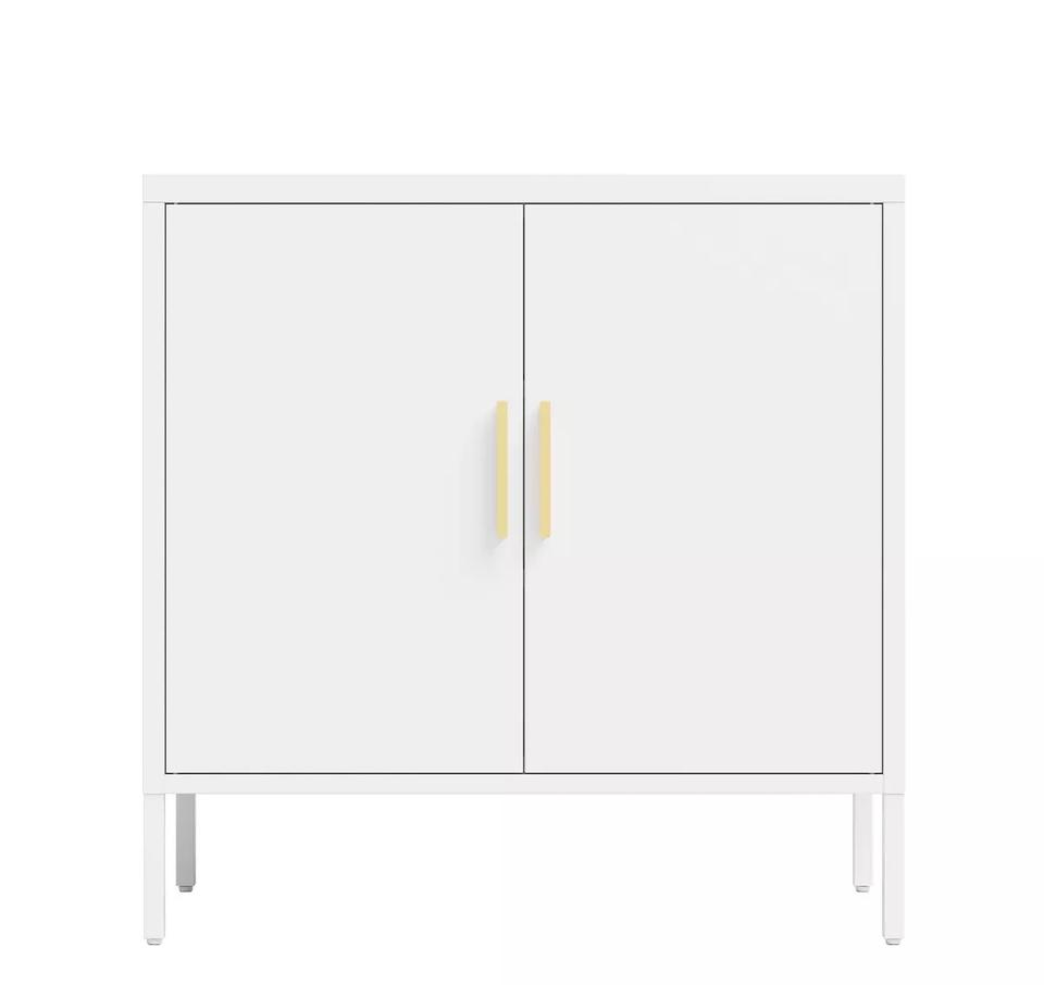 Sleek White Storage Cabinet with Gold Handles Modern Elegant Design for Living Room or Office Organization