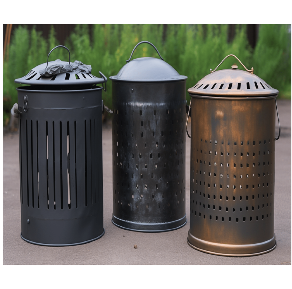 Sleek galvanized garden bin, heavy-duty metal waste container, rustproof trash can for compost, available at wholesale prices