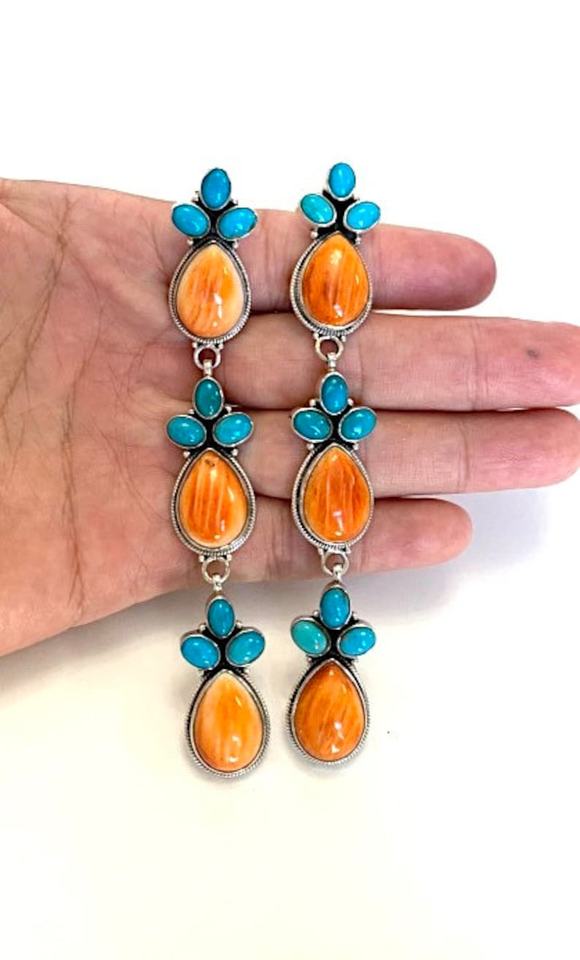 Sleeping Beauty Turquoise Spiny Oyster 925 Sterling Silver Post Dangle Earrings 4.5 Inch Long