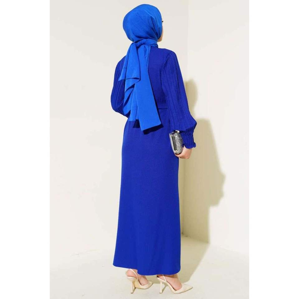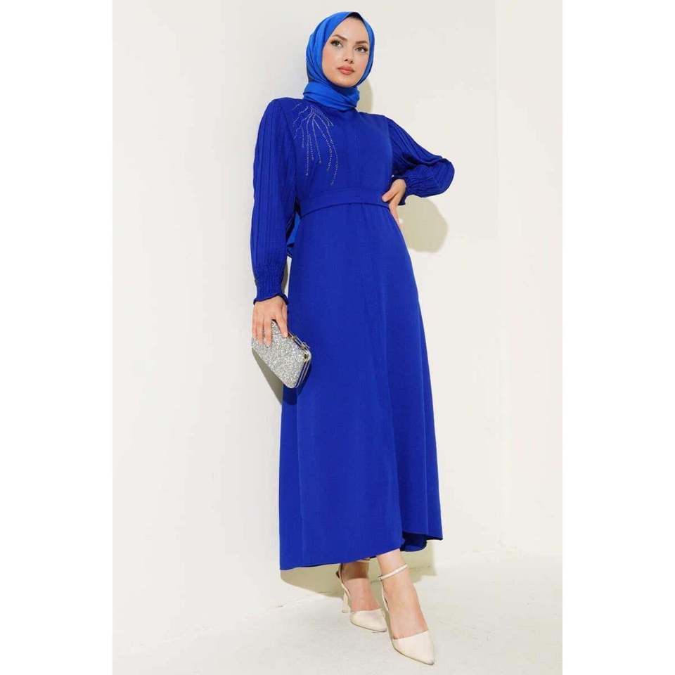 Sleeve Pleated Stoned Abaya Saxe