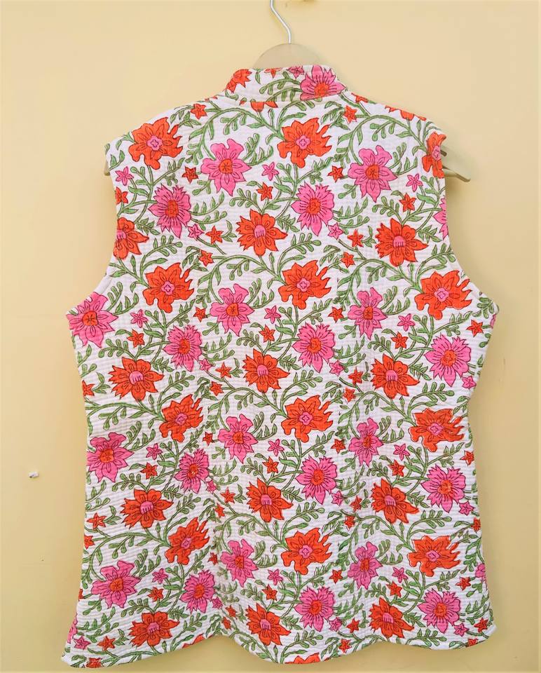 Sleeveless Block Print Jackets Indian Cotton Handmade Winter Vest Coat Bohemian Style Unisex Short Quilted Kantha Jacket