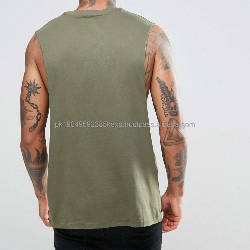 Sleeveless Men's T Shirts Dropped Armhole Cotton Tank Tops Plain Custom Gym Vests