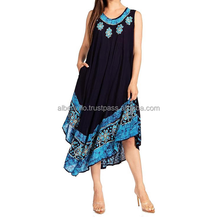 Sleeveless Sexy Beach Women Sun Dress Modern Fashion Maxi Batik Dress Ladies Embroidered on Cheap Price