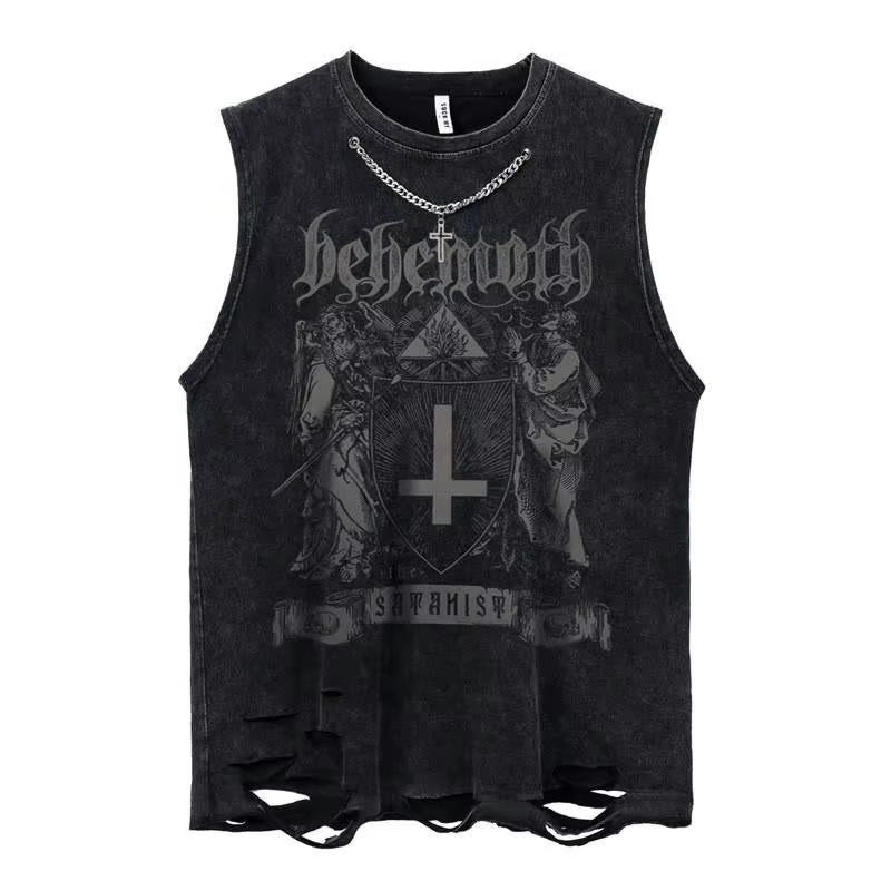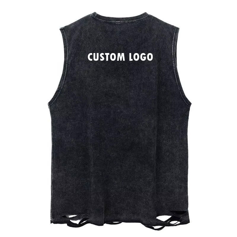 Sleeveless Tank Top for Men Black Custom Color with Custom Logo Rough Style From Bottom Men's Tank Top