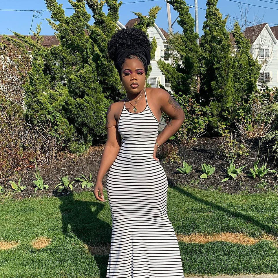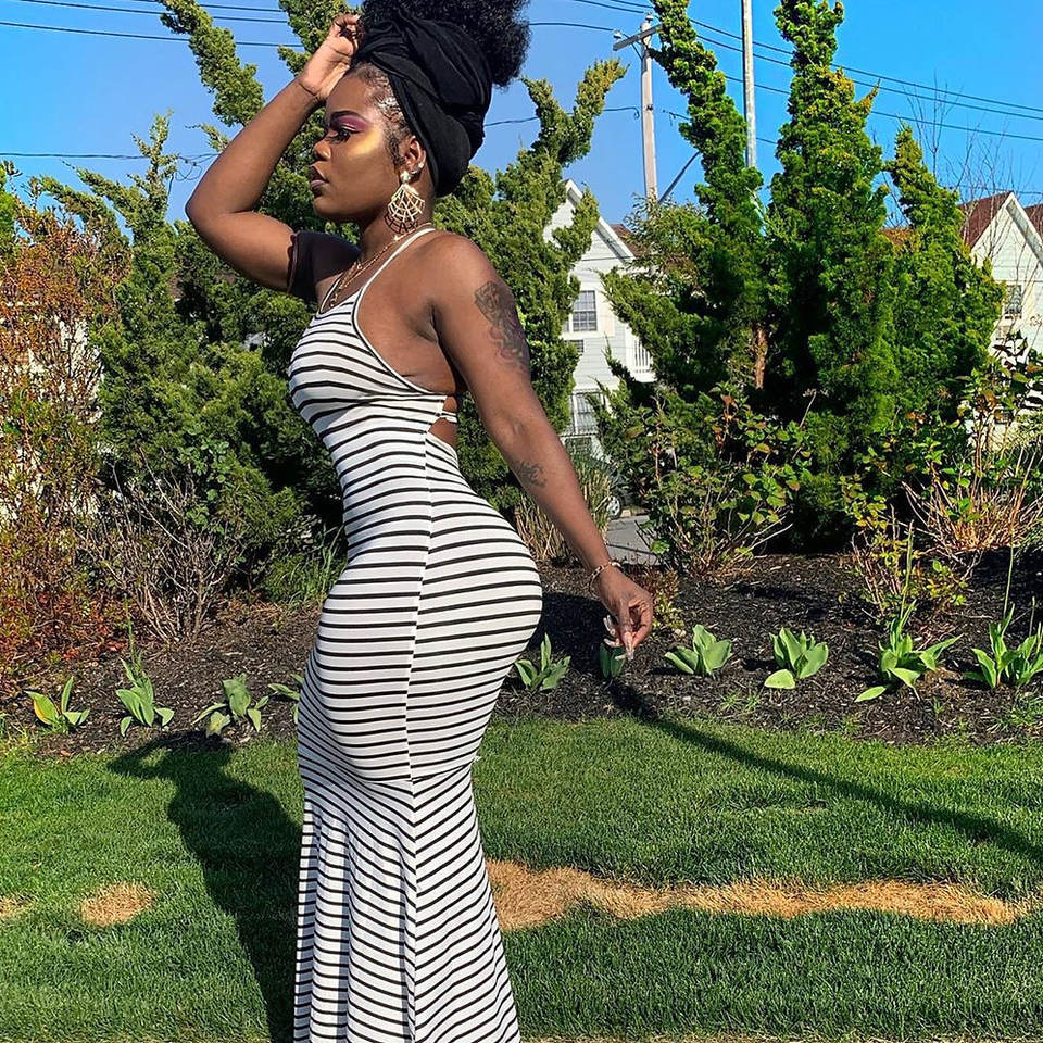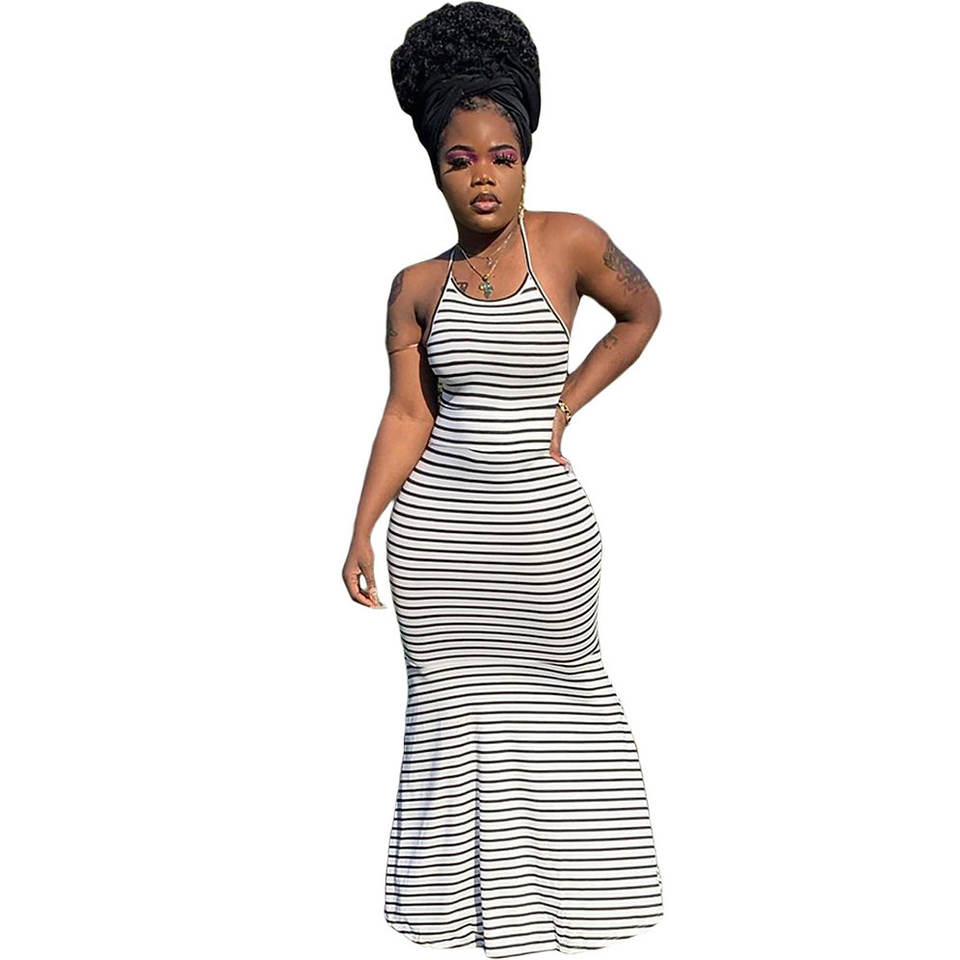 Sleeveless V-Neck Striped Casual Dresses for Plus Size Women Sexy and Comfortable