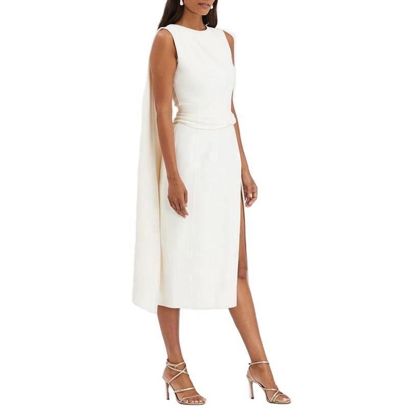 Product Name:Sleeveless White Midi Formal Lady Elegant Women Dr