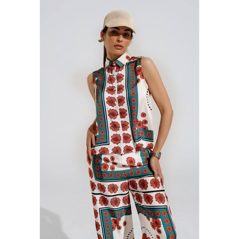 Women's Chic Style Sleeveless Cotton Blouse Model 6888.1 Stylish Trendy Top for Office Everyday Wear Loose Fit Summer Chic Top