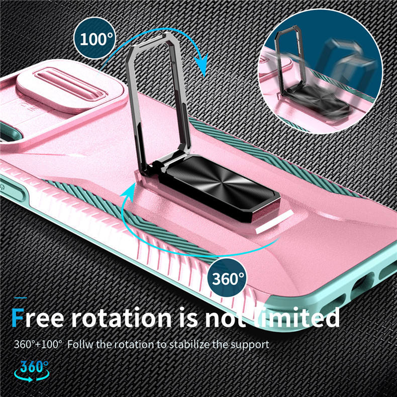 Slide Window Case Ring Stand Cover 2in1 Drop Protection Phone Case for iPhone XR