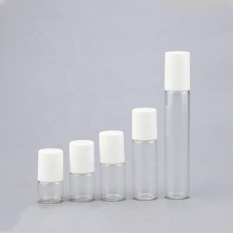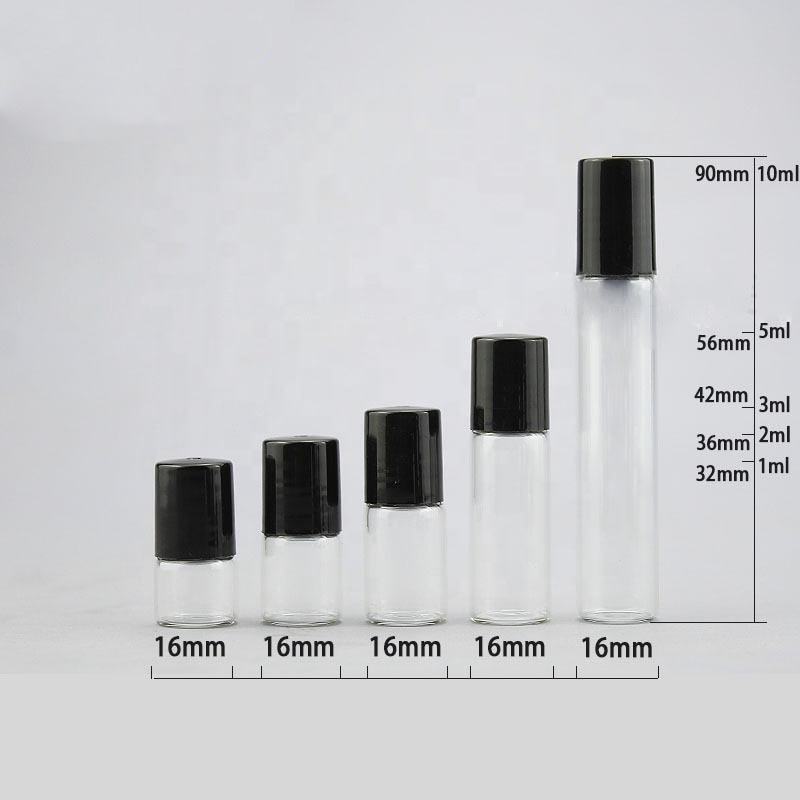 Slim Clear & Amber Glass Roller Bottle 1ml to 10ml Roll on Perfume Container with Black & White Cap