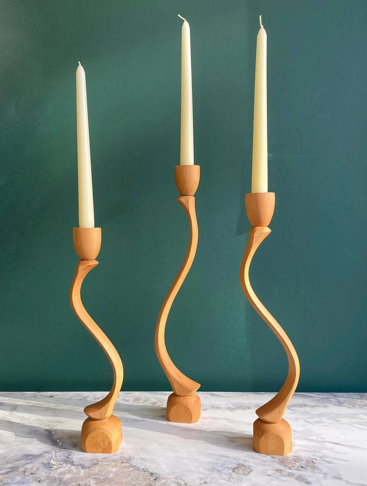 Slim Curved Wooden Candle Holder for Home Styling Tabletop Display Party Setup and Cozy Corner Decor Handcrafted From India