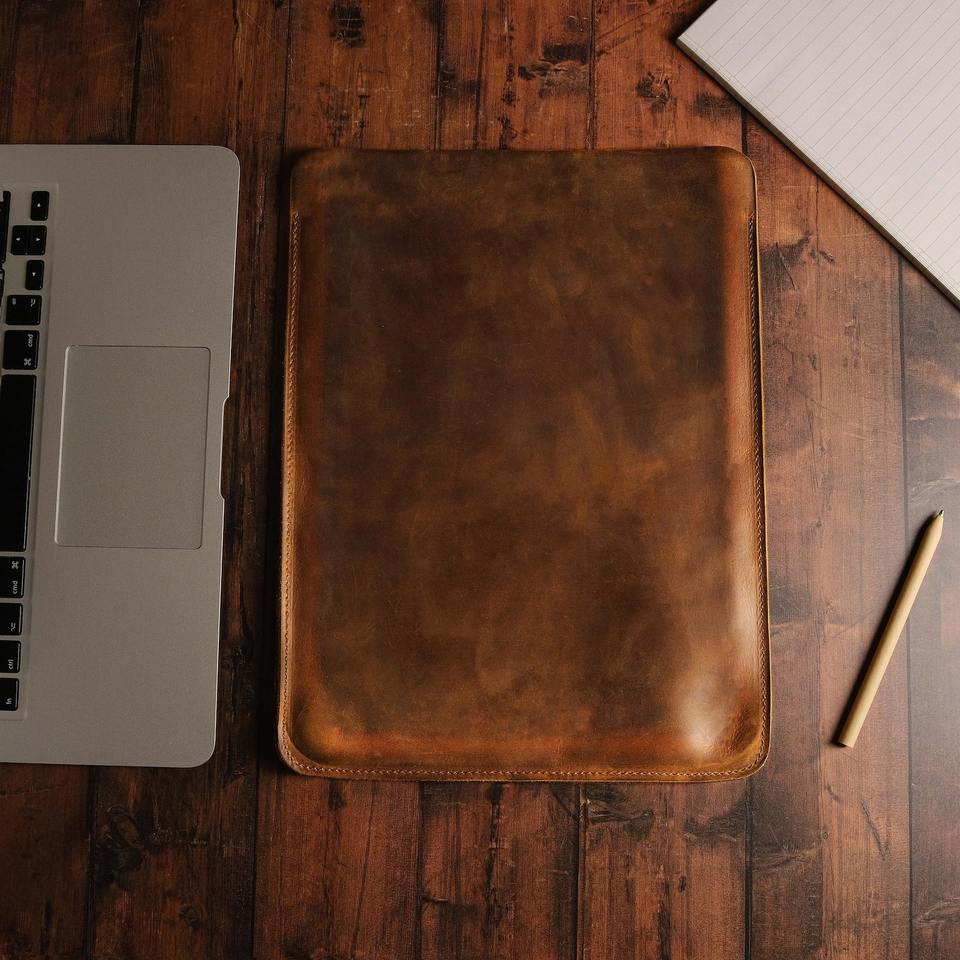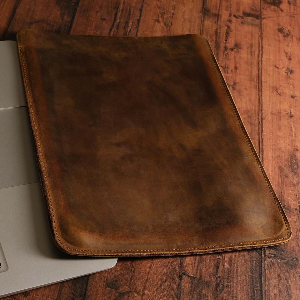 Slim Genuine Leather Fashionable Customizable Laptop Sleeve Shockproof Durable Travel Office Carry Case LLS-0006