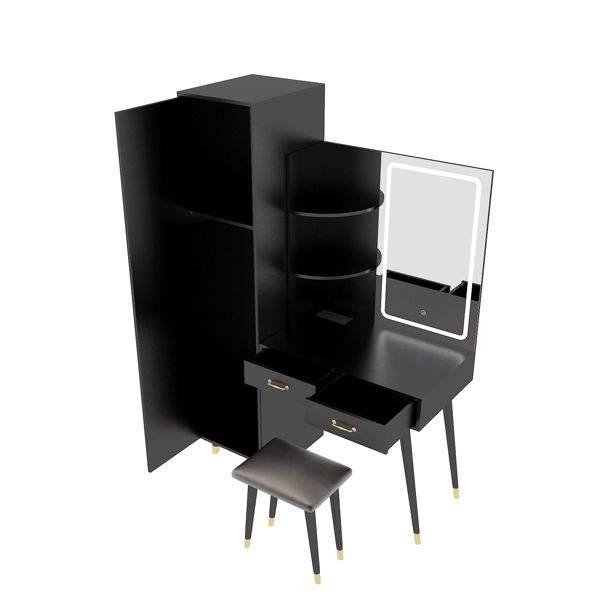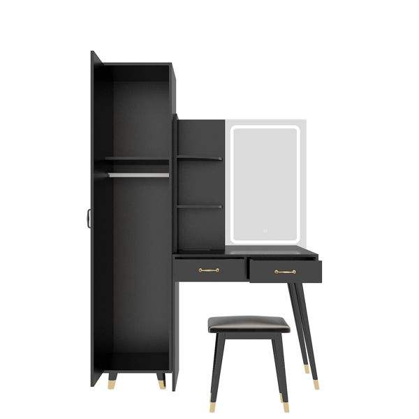 Slim Makeup Vanity Table with LED Mirror and Power Outlets 2 Drawers Tall Armoire Wardrobe Set for Bedroom Dressing