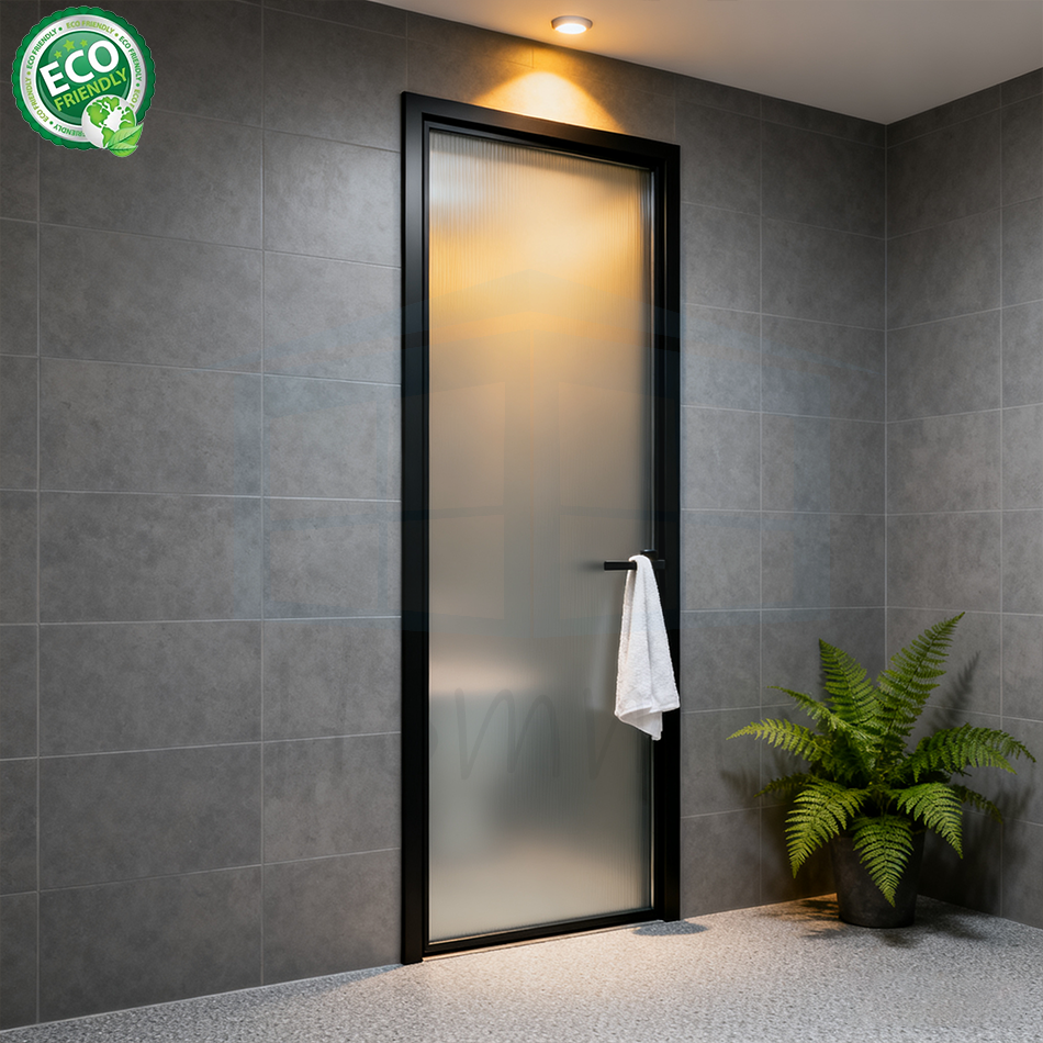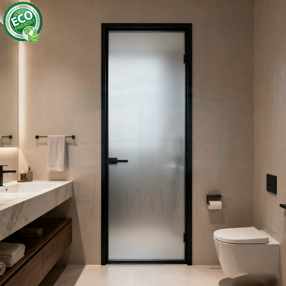 Slim Narrow Aluminum Frame Double Tempered Glass Door Interior Swing Casement Aluminum Toilet Door