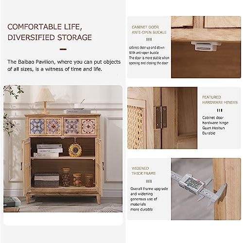 Slim Rattan Accent Cabinet for Entryway Kitchen or Hallway-Console Shoe Storage Stand & Rack