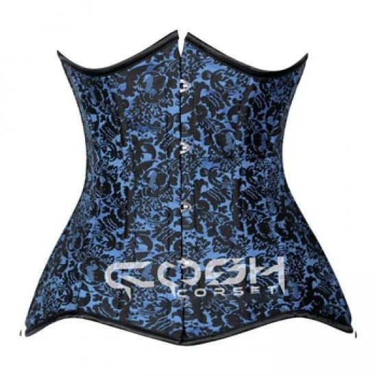 Slimming Belt Steelboned Blue Underbust Floral Brocade Corset | Custom Fashion Corset with Front Busk & Black Satin Trim