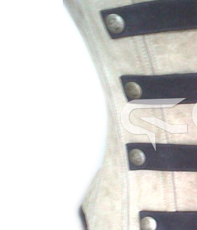 Slimming Fit Curvy Underbust Steel Boned Waist Training White Suede Leather Corset With Black Strap & Front Busk Closer