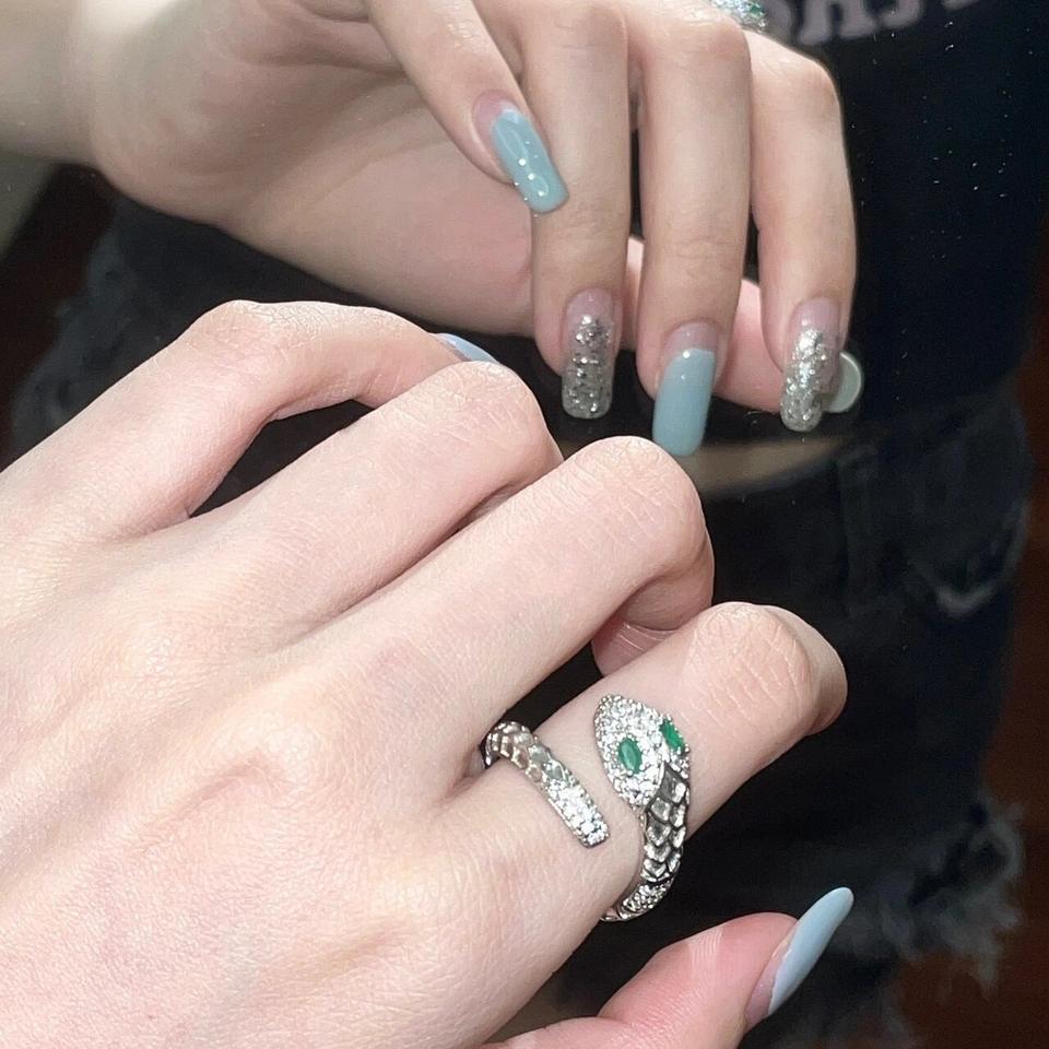 Slytherin Spirit Snake Ring S925 Sterling Silver Inlaid Fingertip Pet Personalized Serpentine for Men Women Green Open Design