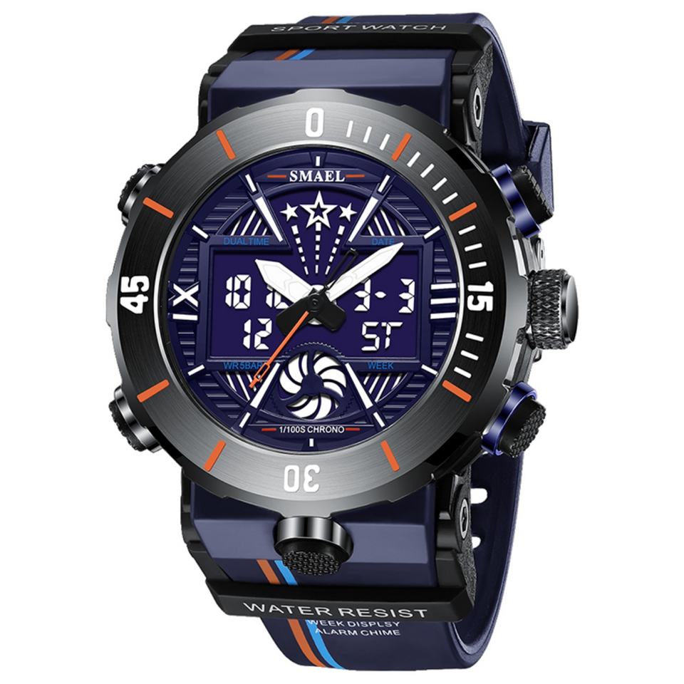 Smael Modern 8051 Sport Waterproof 5ATM Dual Time Display Alarm Stop Watch Luminous Men Watch