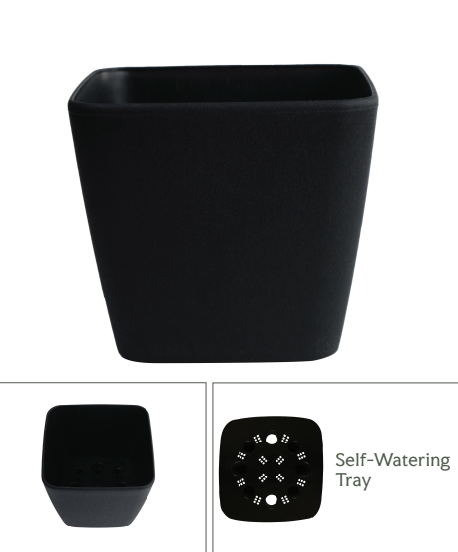 Small 6-Inch Black Square Self-Watering Nursery Pot Biodegradable Plastic Material
