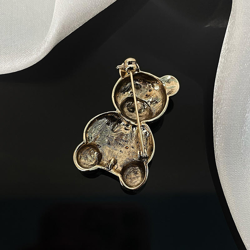 Small Bear Lapel Pin Crystal Brooch with Rhinestone Gold Plated Alloy Women's Wedding Engagement Jewelry