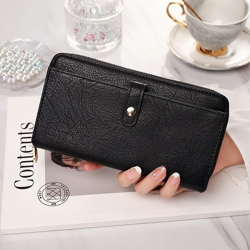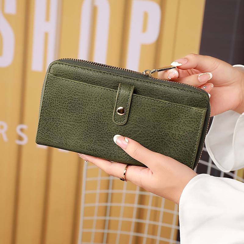 Small Bifold RFID Blocking Long Purse Leather Wallet Large Capacity Card Holder Zipper Wallets for Women