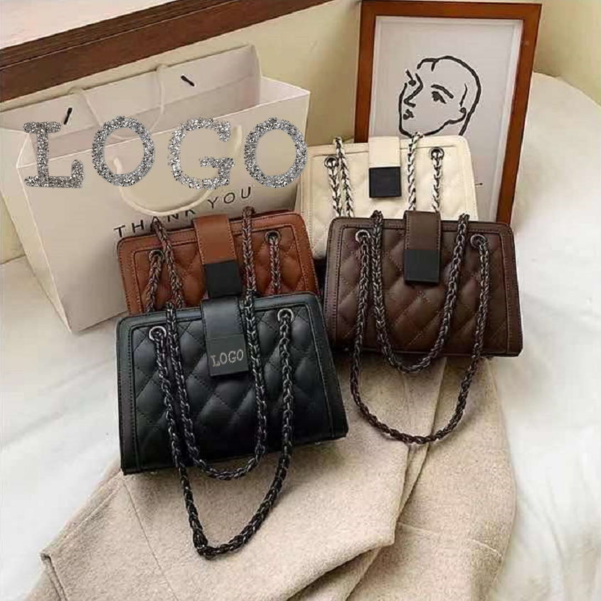 Small Black PU Leather Ins Purse Chain Designer Buckle Crossbody Bag All-match Handbag Female Fashion Bag Women Polyester Single