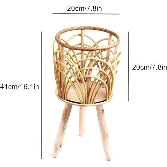 DreamCraft Small Boho Rustic Indoor Plant Stand Woven Tall Flower Pot Holder Decorative Basket Planter Texture Indoor Garden