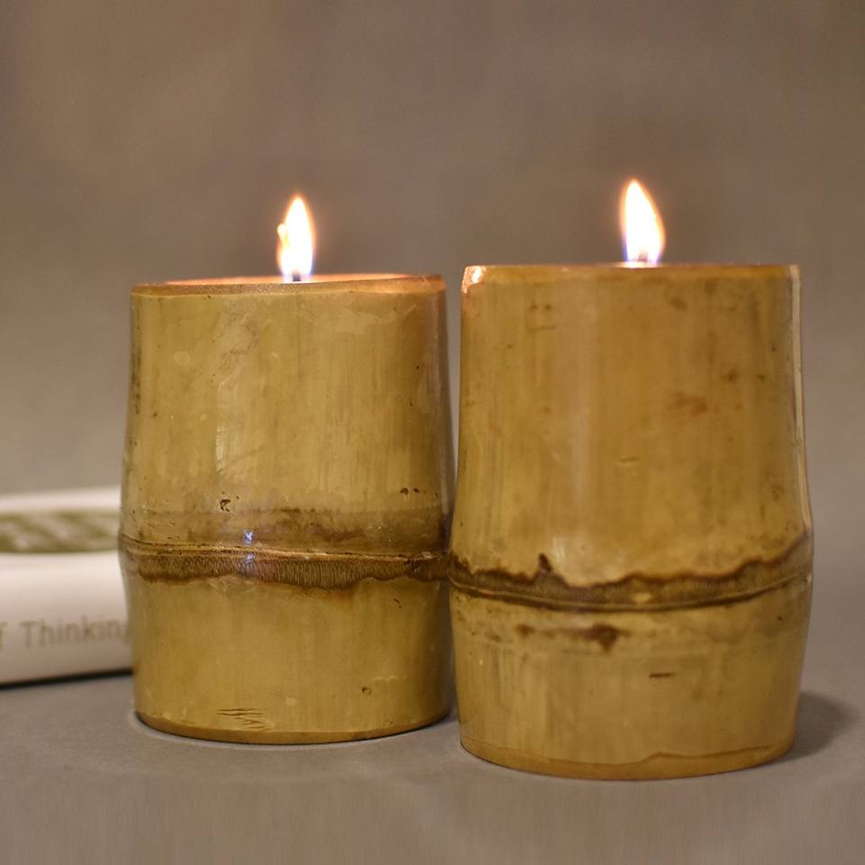 Small Candle Center Piece Decorations Handmade Candles in Bamboo Tubes Decorative Centerpieces for Table
