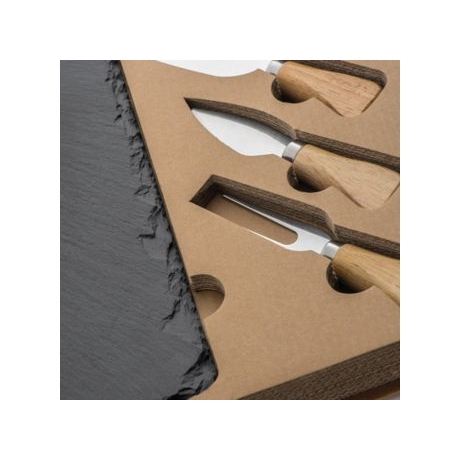 Small Cheese Set with Aluminium Knife Slate Board and Cheese Utensils for Home Kitchen Use Laser Logo Box Packed