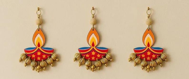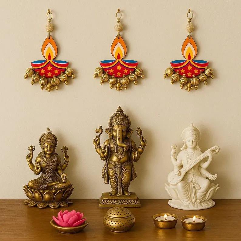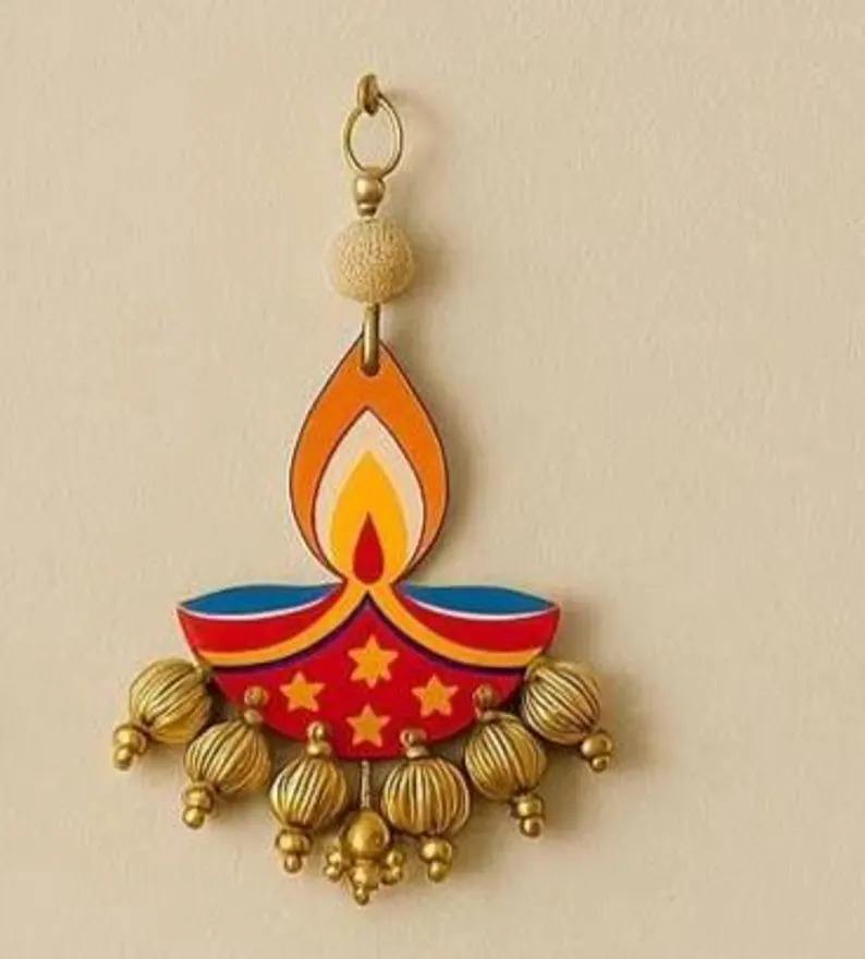 Small Deepak Wall Hanging, Golden Star Beads, Indian Pooja Backdrop, Diwali Decor, Ganpati Pooja Decor, Navratri Diya Decor